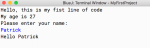 You can now save your code, compile it, and run your application; you should see the message “My age is 27” in the Console window.